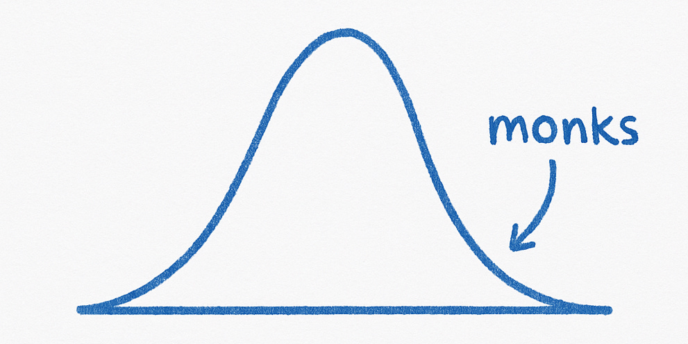 As with everything, this experience can be viewed as a normal distribution curve, monks are amongst those focus of the moment the most and the rest of the world’s population spread along the rest of the curve. The leftmost side of the curve consists of a population who let their moments get swept away. Closer to the right side, you will find people who’s moments will feel a little longer and more real, and in the middle of the curve, individuals will dip in and out of awareness.