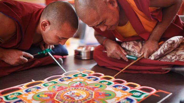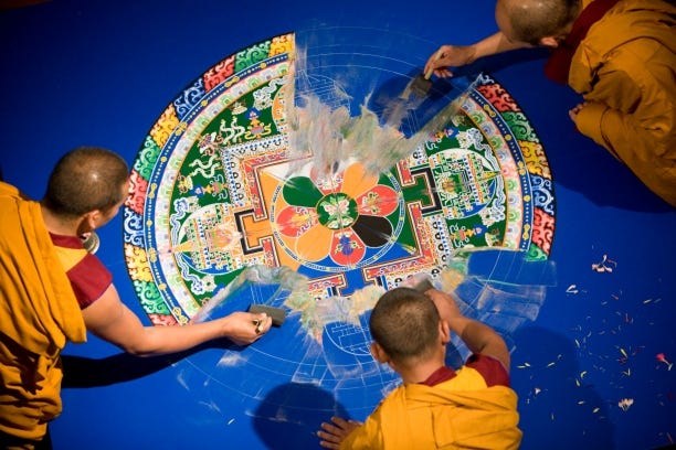 A vivid and surprising practice by Tibetan Buddhist monks is to arrange intricate art from colourful sand, forming sand mandalas - only to brush it all away once it’s done!